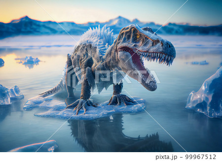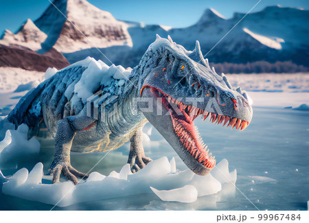 glacial period. extinction of the dinosaurs. reptile ingrown into ice.