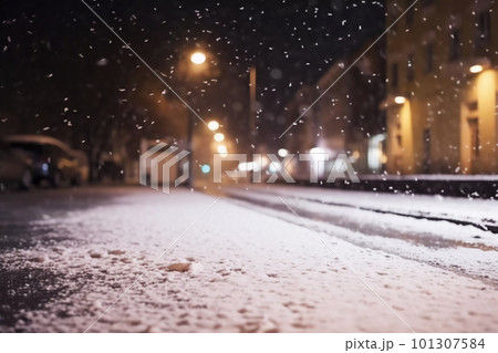 snowy street. slush and snow in the city.