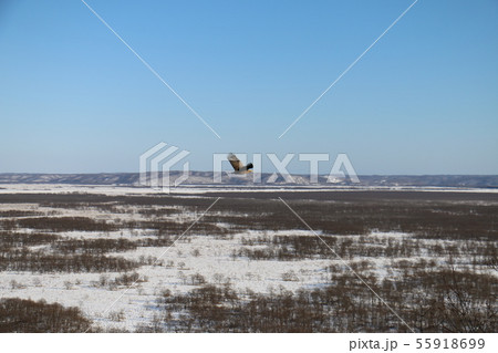 飛行在多雪的領域的獵鷹