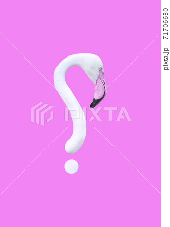Contemporary collage. 3D illustration. White flamingo in the form of a question mark on a pink background.