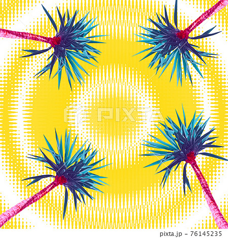 Contemporary collage. Palm tree on a bright abstract background with waves. Summer concept, landscape.