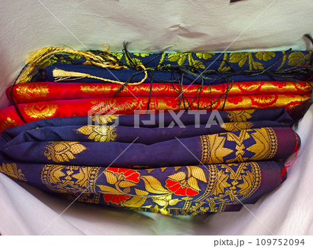 colorful silk fabrics and clothes