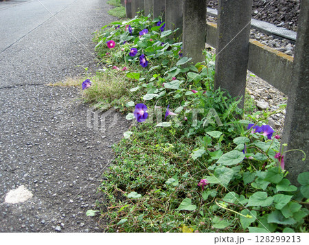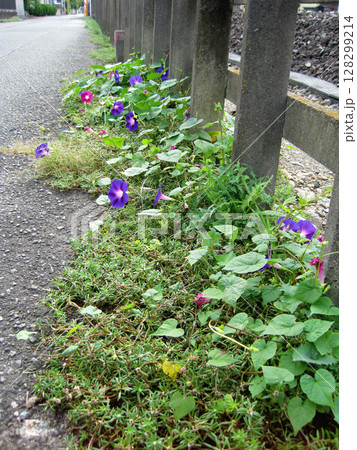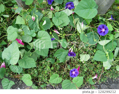 盛開的深藍紫色牽牛花和深紅紫色牽牛花