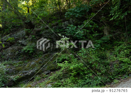 一個 2 歲男孩蹲在灌木叢中尋找昆蟲