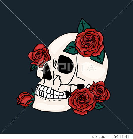 Skull design. Bright Magic Psychedelic Mushrooms and skulls. Tattoo template of skull