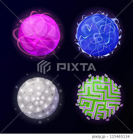 Magical game orbs with glowing neon effect. Magic crystal balls, energy spheres with light effect. Witchcraft glass orbs glowing isolated on dark background