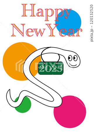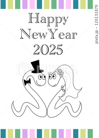 2025年新年賀卡材料,新年賀卡上有蛇年令和七年生肖蛇的彩色插圖