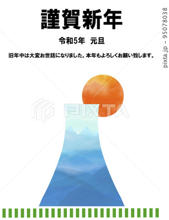 帶有 2023 年第一次日出和富士山插圖的新年賀卡材料