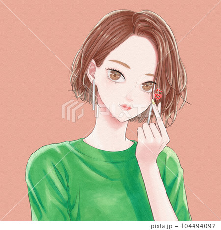 用遮瑕膏化妝的女人的插圖(白色背景)