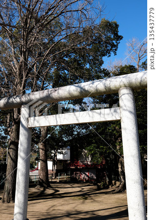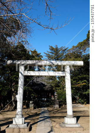 神社的鳥居在冬日蔚藍的天空下格外醒目。