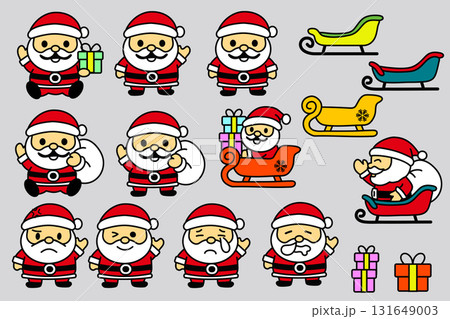 可愛的聖誕老人系列,有雪橇、袋子和禮物!