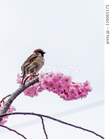 盛開的櫻花和麻雀