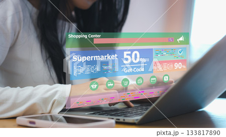 Ecommerce digital shopping interface with discount coupon and online deal display