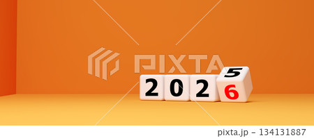 2026 New Year and Business Transition Concept with White Rolling Dice on Orange Background