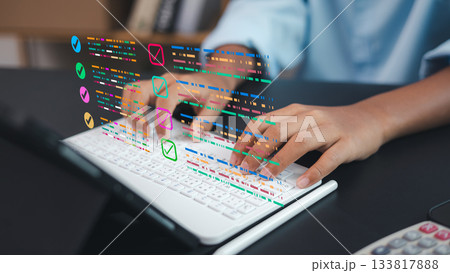 Digital Checklist Interface on Laptop Keyboard for Business Productivity