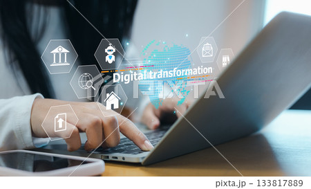 Digital Transformation Interface on Laptop with Modern Technology Icons