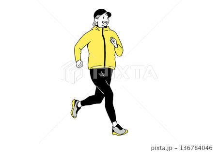 一幅女性跑步的插畫。慢跑和健康的生活方式。手繪向量素材。