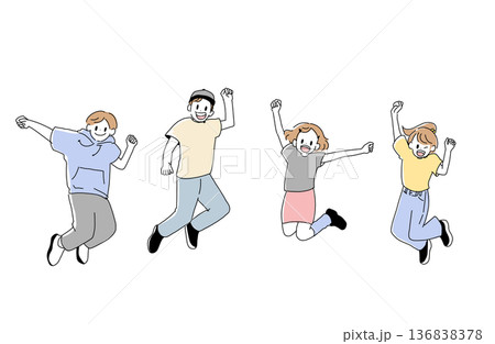 兒童活力跳躍插圖,朋友和青少年,手繪向量素材