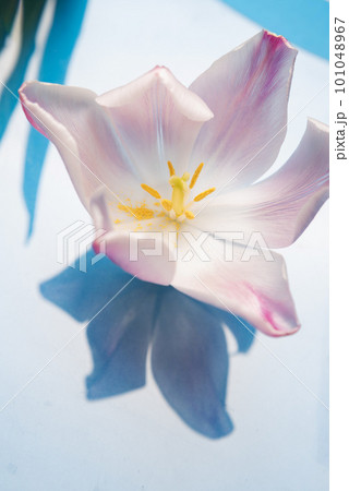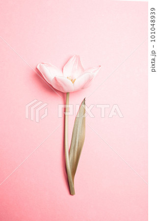 Blossoming pink tulip flower on a light background