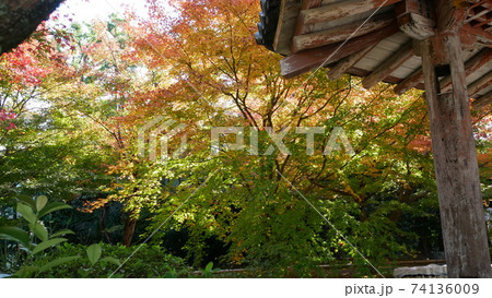 京都的秋天:秋葉和古老的寺廟燃燒成黃色