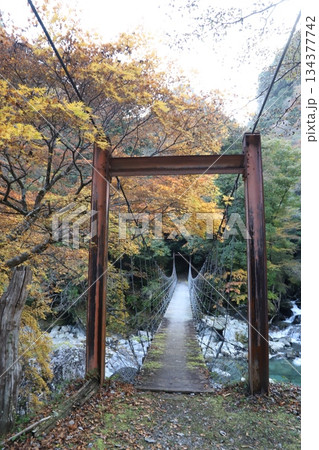 被秋葉染紅的吊橋