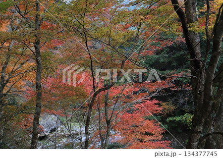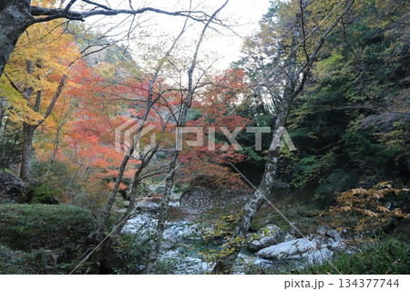 秋日山谷中黃葉與紅葉的漸變