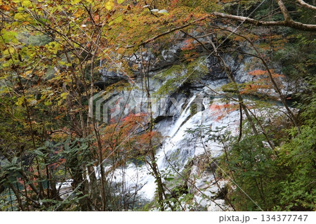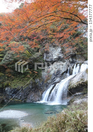 清澈的溪流和翠綠的瀑布潭在秋葉的襯托下,呈現出斑斕的色彩。