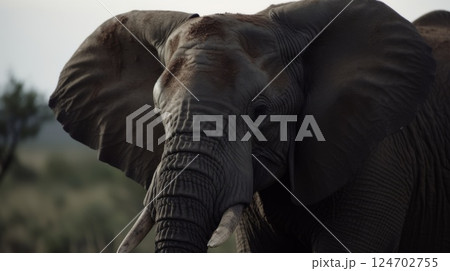 Close-up side view of the head of an elephant in the savannah. wild animals, AI-generated
