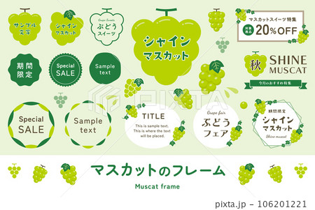 葡萄插圖和框架集。葡萄標題標題,標籤素材,簡單可愛的矢量裝飾。