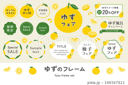 一組簡單可愛的柚子框架、矢量圖裝飾、標題標題、標誌字符和圖標