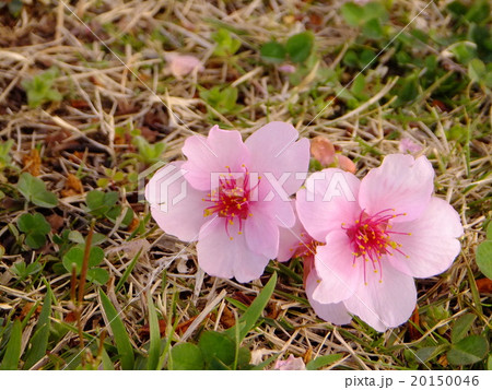 櫻花花瓣落在草坪上