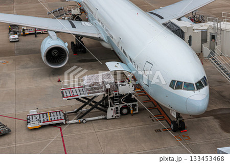 長崎機場明亮的夏日天空和飛機