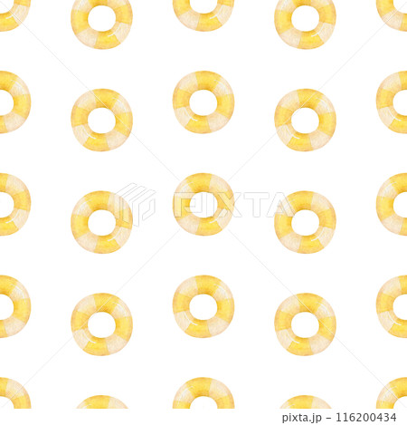 Watercolor seamless pattern with yellow inflatable rubber illustration on isolated white background