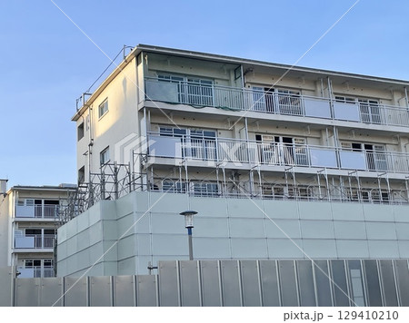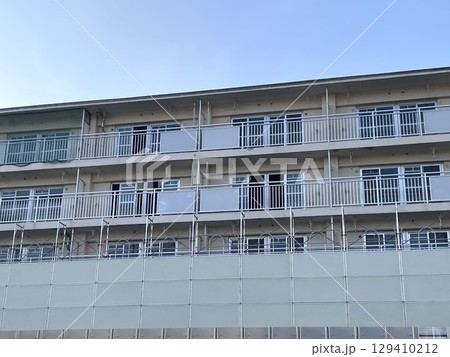 公寓大樓大規模維修期間,在公共樓梯上安裝長膠帶
