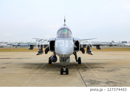 Saab JAS 39 Gripen light single-engine supersonic multirole fighter at airshow in Thailand.