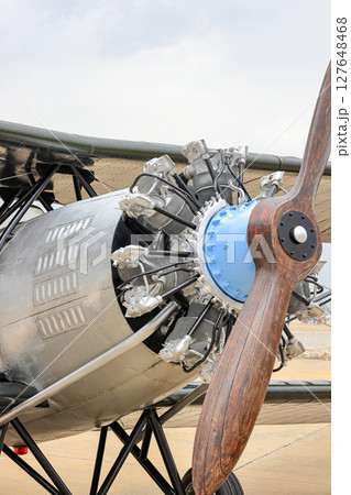 Closeup Airplane cylinders engine, Vintage Airplane engine.