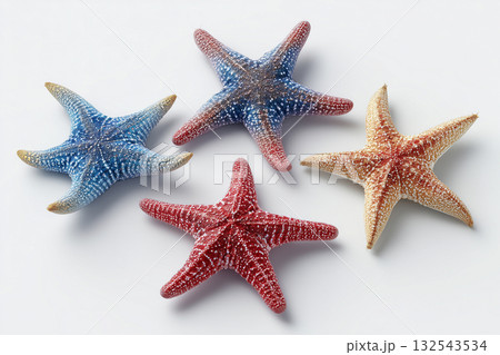 Vibrant Collection of Starfish: Still Life with Echinoderms in Red, Blue, and Sandy Orange Tones