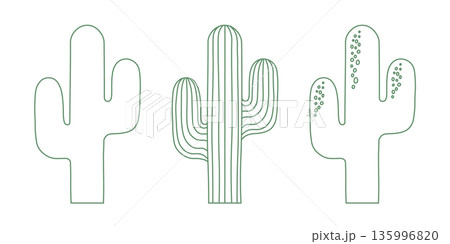 Set of hand-drawn cactus outlines isolated on a transparent background. PNG and vector illustration