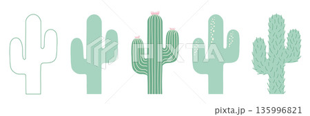 Set of handdrawn pastel cactuses, isolated on a transparent background. PNG and Vector illustration