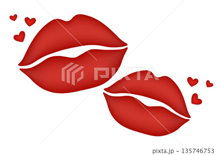 Two red lips with flying hearts, isolated on a transparent background. Romantic kiss illustration for Valentines Day greeting card, love poster, beauty cosmetic design, or lipstick advertisement. EPS