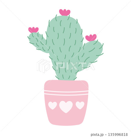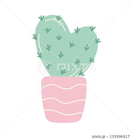 Pastel Cute Heart Cactus. Handdrawn cute cactus in the heart shape, isolated on a transparent background. Perfect for Valentine Day greeting card or wedding invitation. PNG and Vector illustration