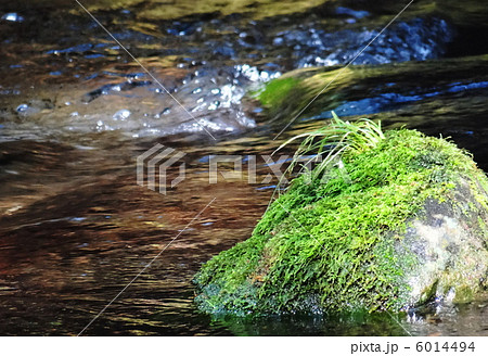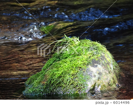 在清澈的溪流中曬太陽的苔蘚岩石1