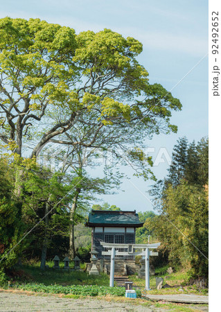 一棵雄偉的大樹矗立在淡路島拍攝的鄉村,注視著人們