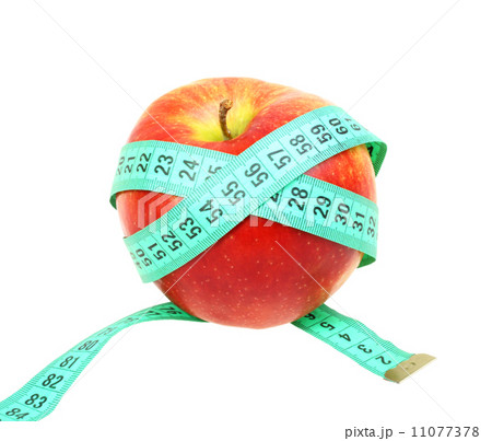 Measure tape on red apple