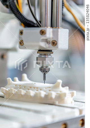 A cutting-edge 3D printer is fabricating intricate metal parts in a modern workshop. The machine carefully layers material to create precise components with innovative methods