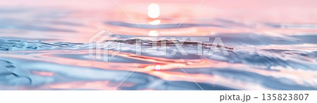 Calm sea reflects serene hues of pink and purple during twilight. Gentle waves roll in, creating a peaceful atmosphere ideal for reflection and mental clarity
