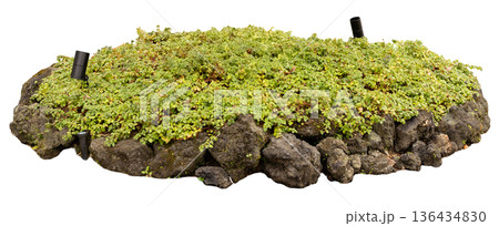 This green moss mat shows a dense layer of moss that can be used for landscaping, craft projects, or as decoration. The cut-out background makes it easy to add to designs