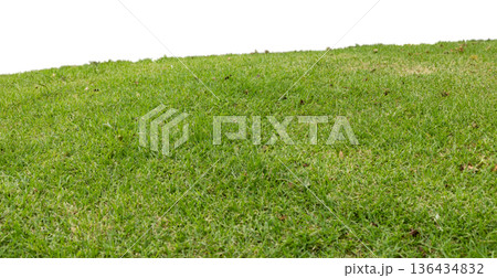 Fresh green grass covers a slope with a smooth, even texture. The scene is cut out on white background, ideal for digital graphics or presentations