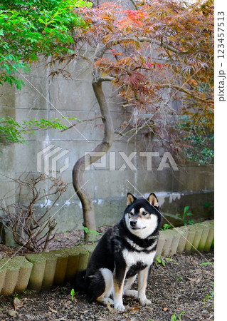 走在日式花園中的柴犬