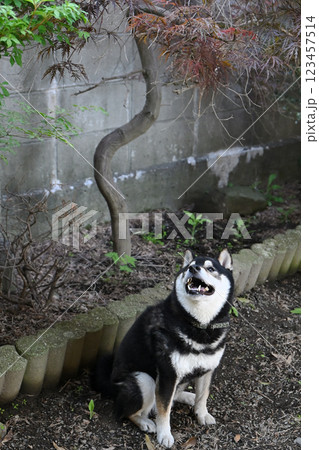 柴犬戶外,抬頭